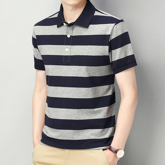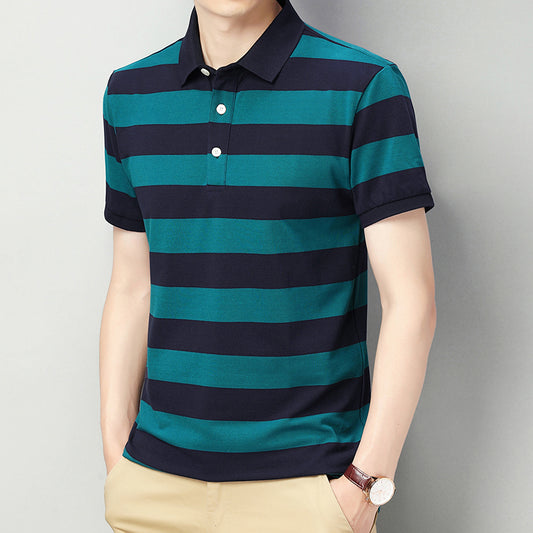 Short-sleeved contrast striped fashionable polo shirt tops for men