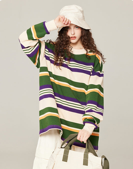 Pure cotton long-sleeved striped T-shirt