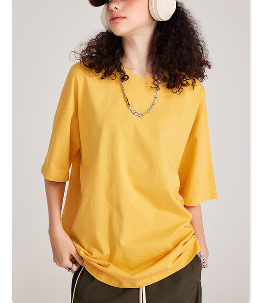 Solid color loose cotton short-sleeved T-shirt