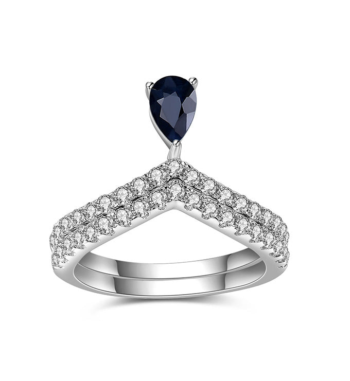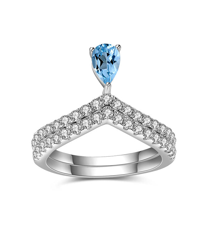 Classic Double Ring-Natural Red Garnet-Blue Topaz-Cubic Zirconia