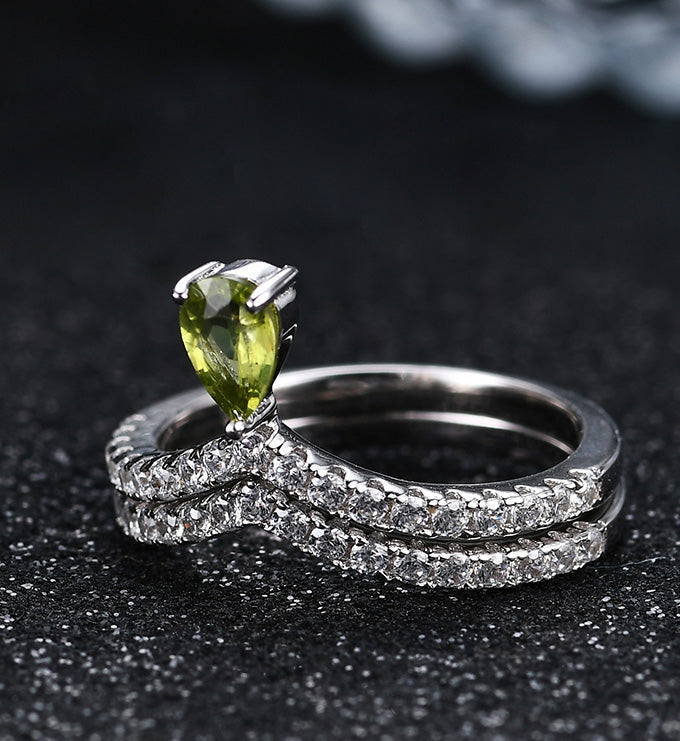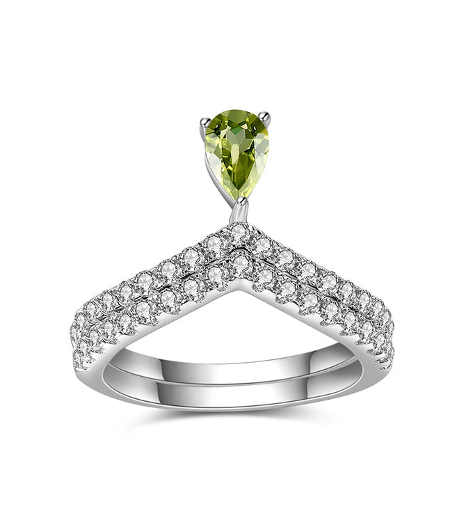 Classic Double Ring-Natural Red Garnet-Blue Topaz-Peridot-Sapphire(This is a stone optimized on natural sapphire, not pure natural sapphire),Cubic Zirconia, S925 Sterling silver.