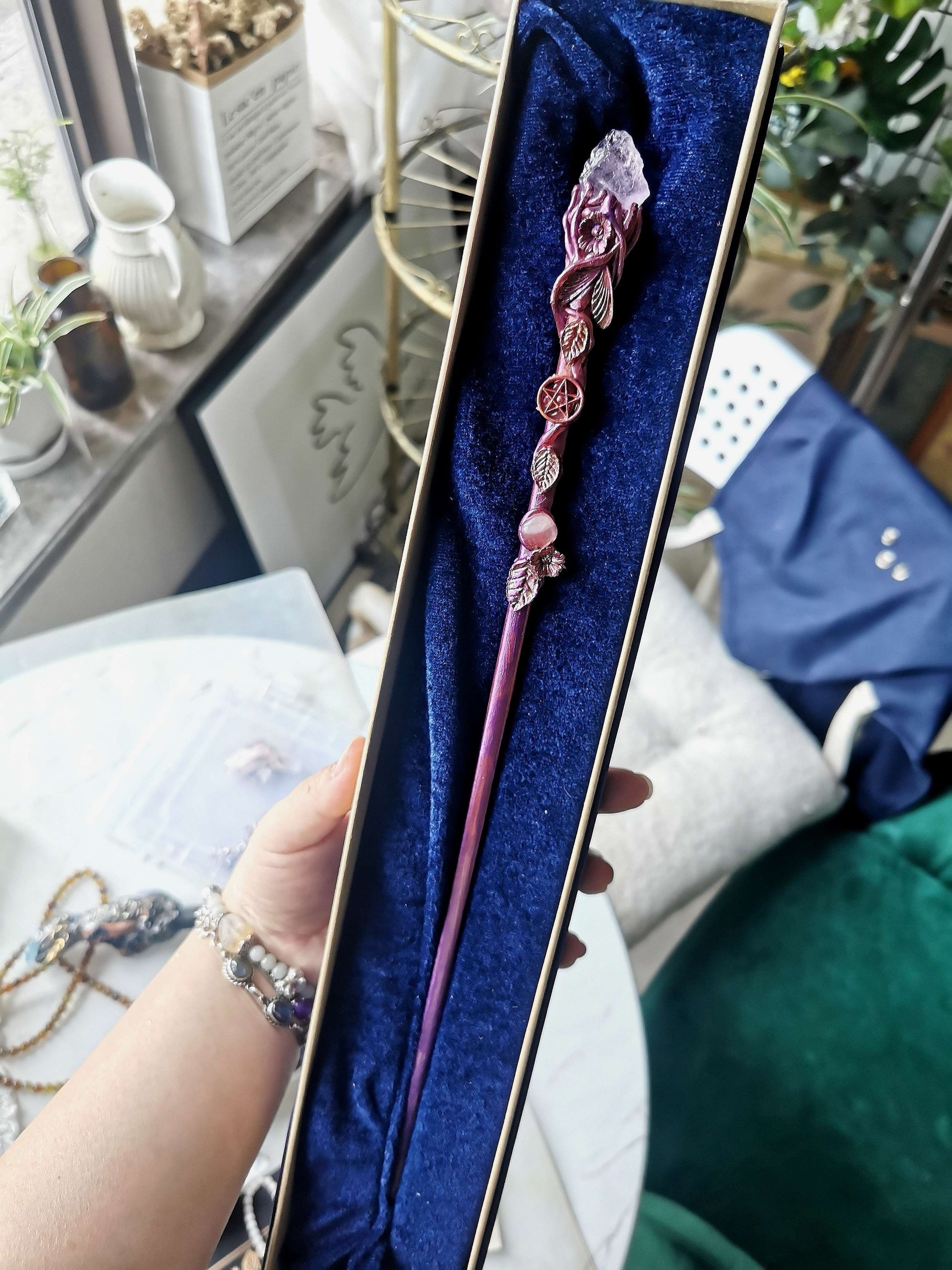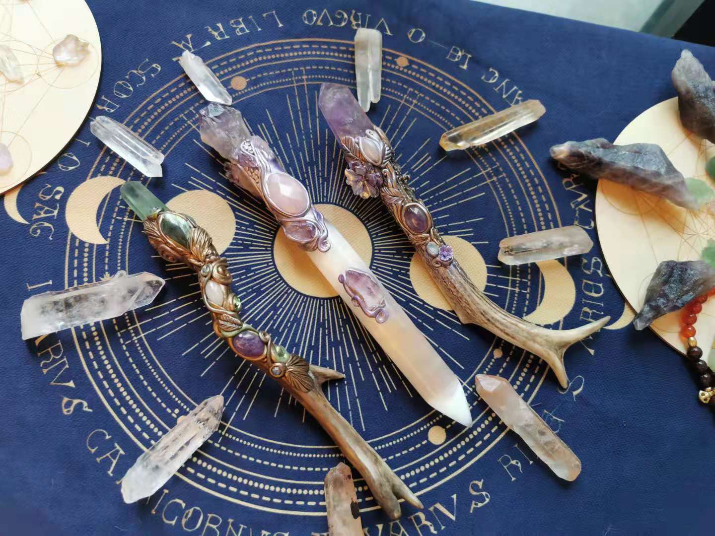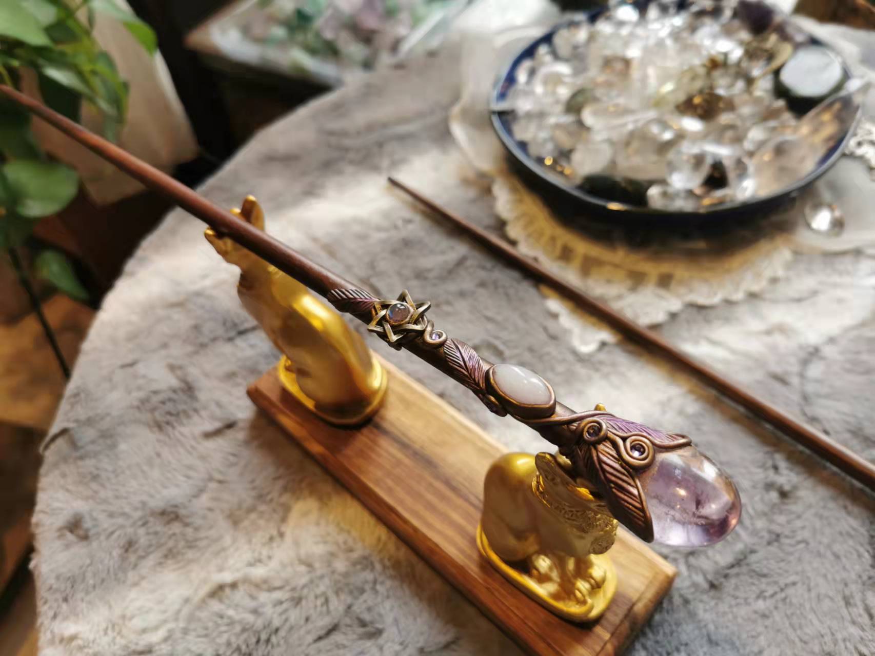 Magic Wand-Natural crystal solid wood Wearable handmade