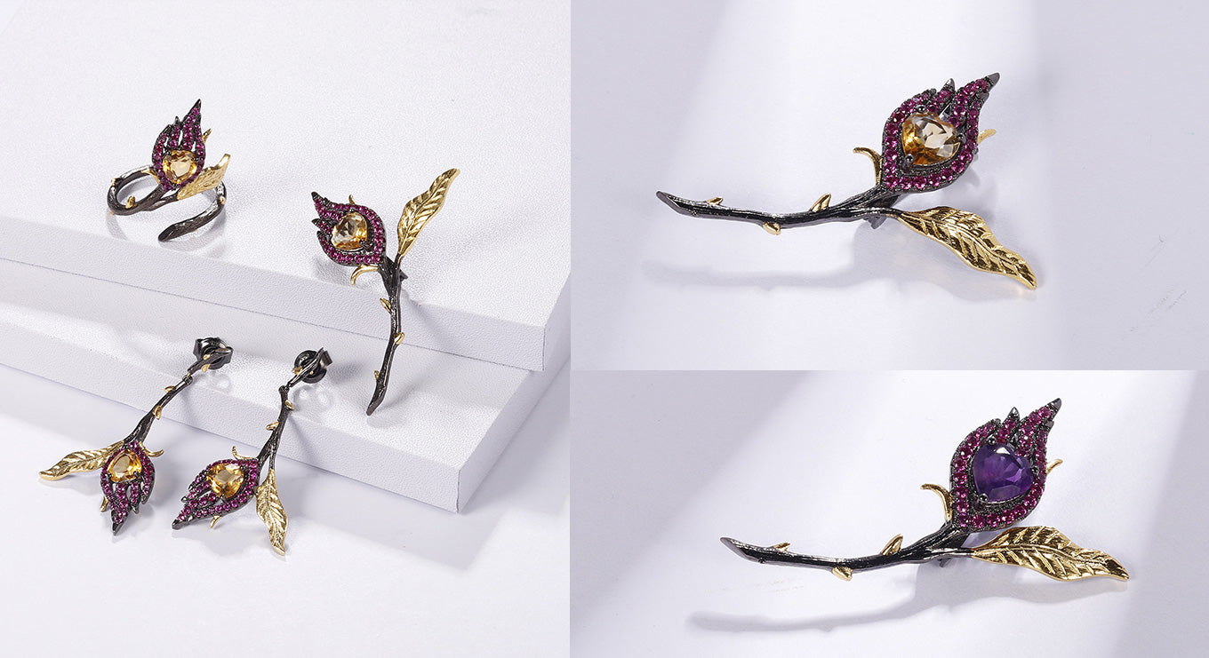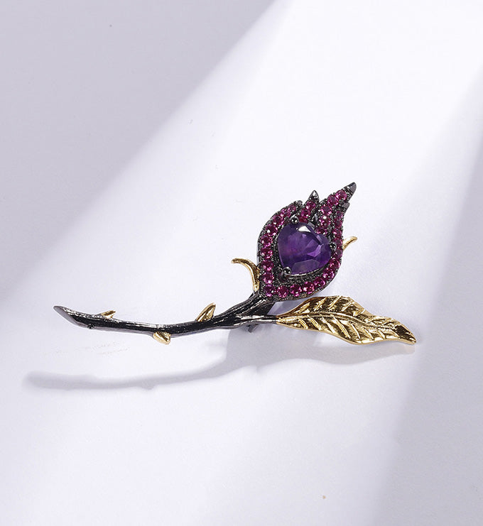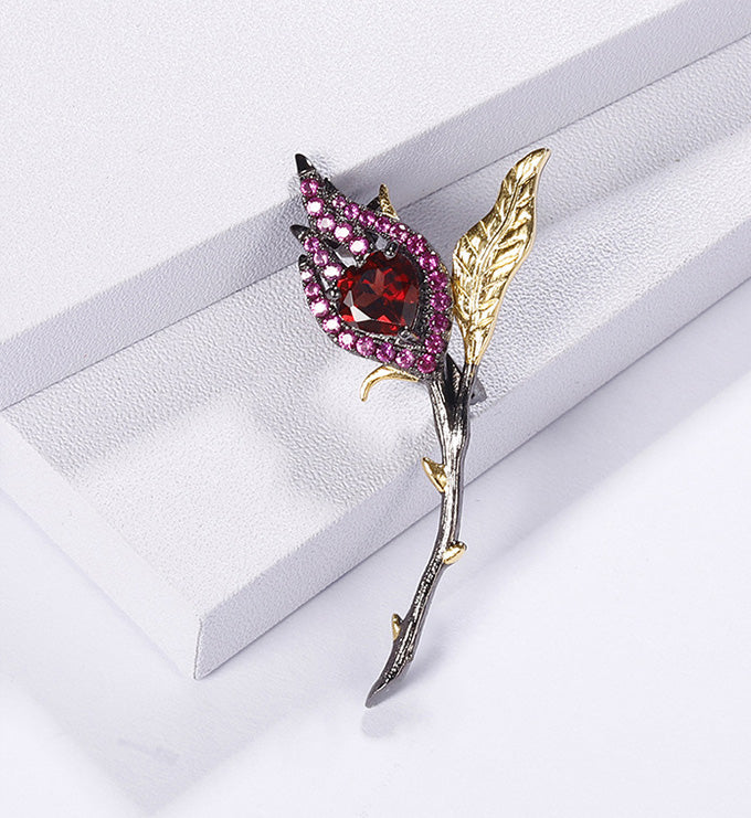 Red Garnet brooch Natural gemstones High grade jewelry