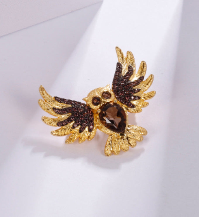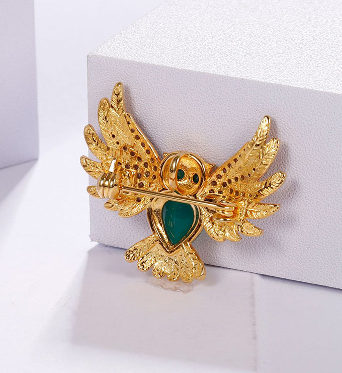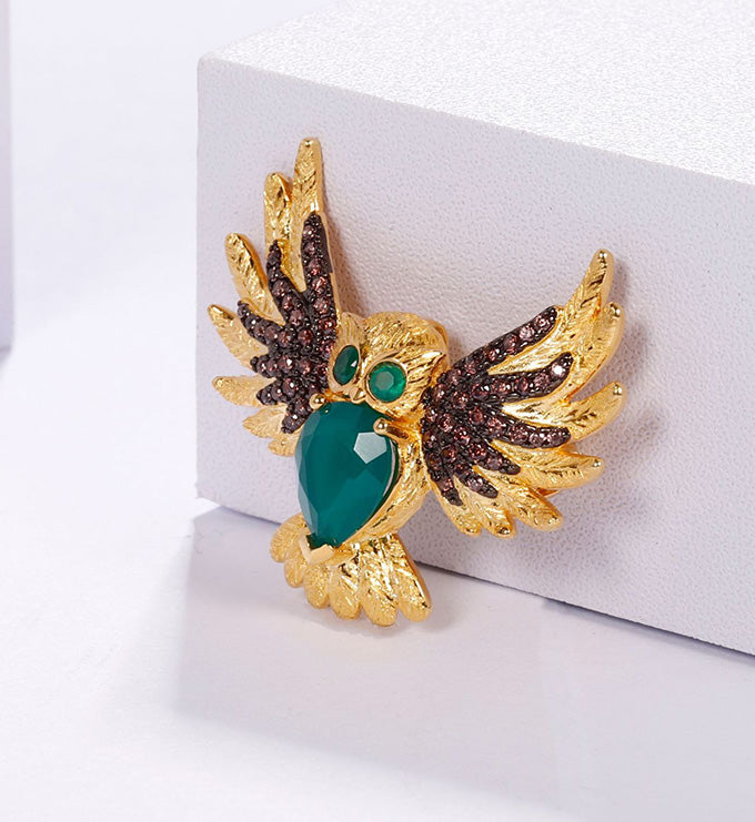 Owl brooch, S925 Sterling silver inlaid with natural gemstones, 18Kgold plated