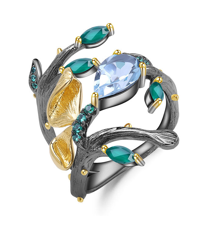 Pastoral Ring-Natural Red Garnet-Blue Topaz-Amethyst