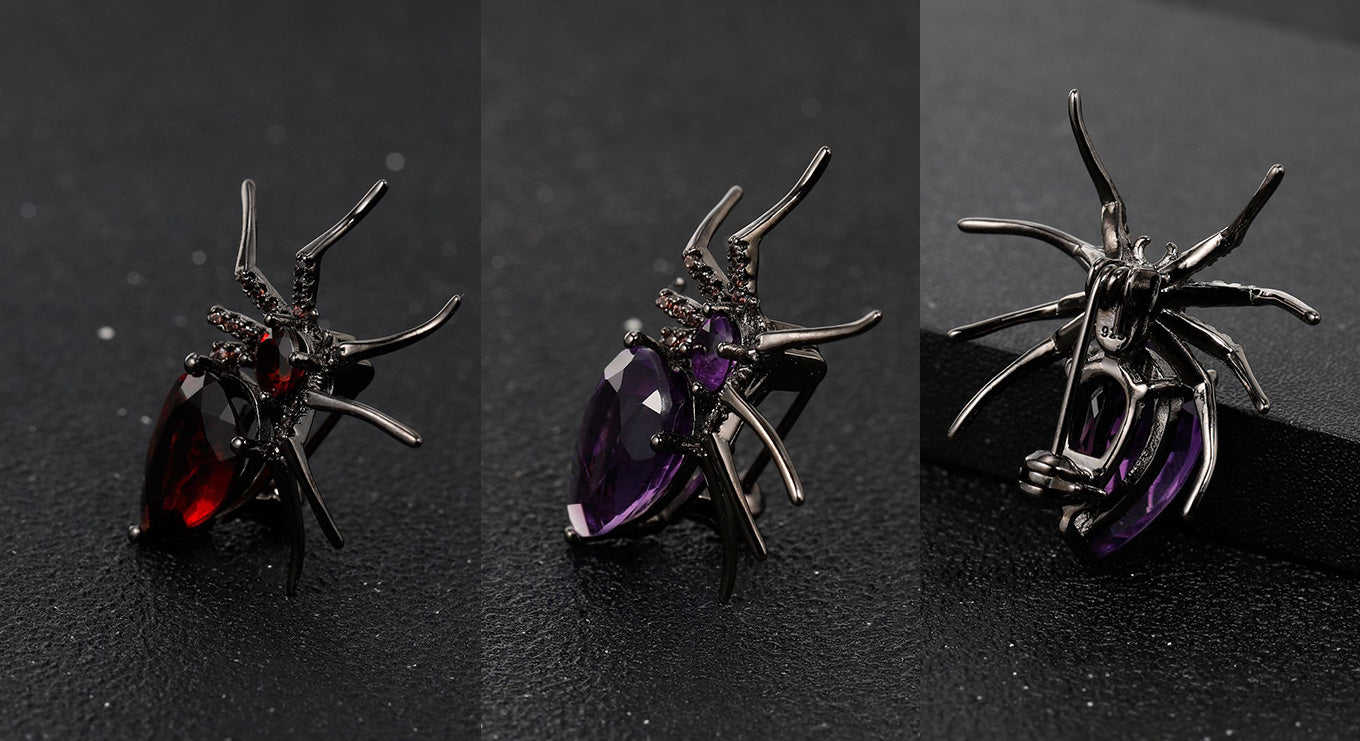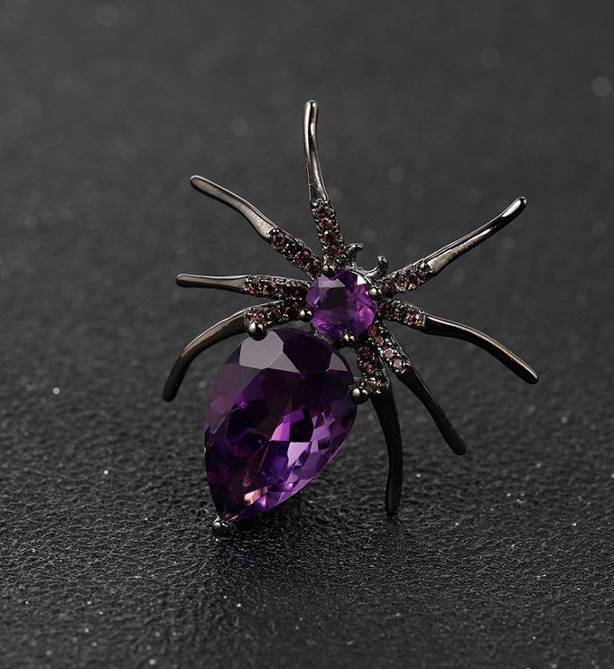 Spider brooch Natural gemstone high-grade jewelry, S925 sterling silver, handmade