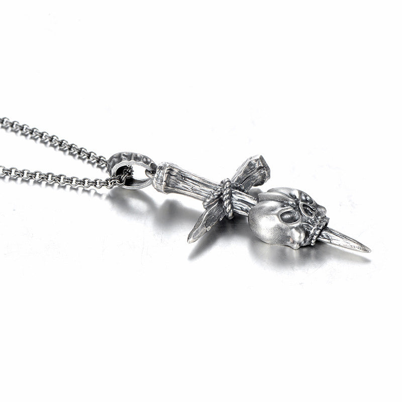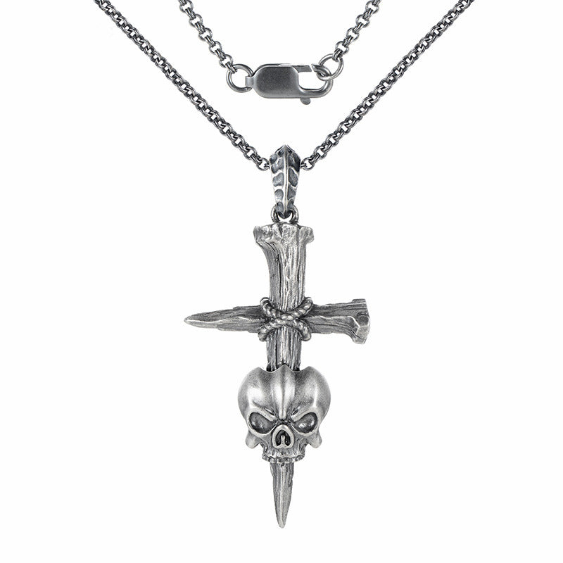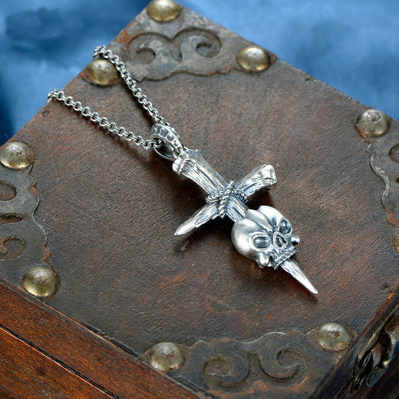 Hip-hop Cross Skeleton Pendant Necklace,S925 sterling silver,