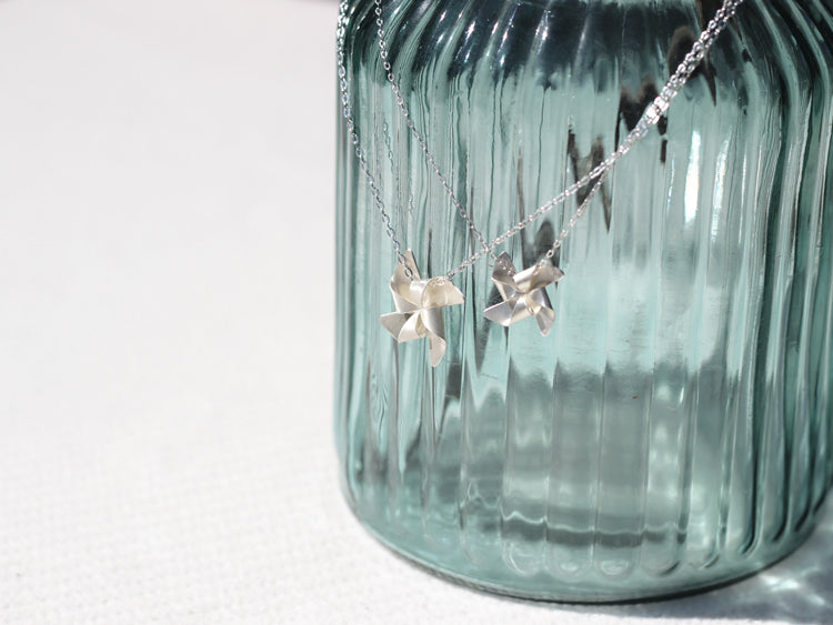 Material:windmill leaf 99% sterling silver, chain 92.5% sterling silver.