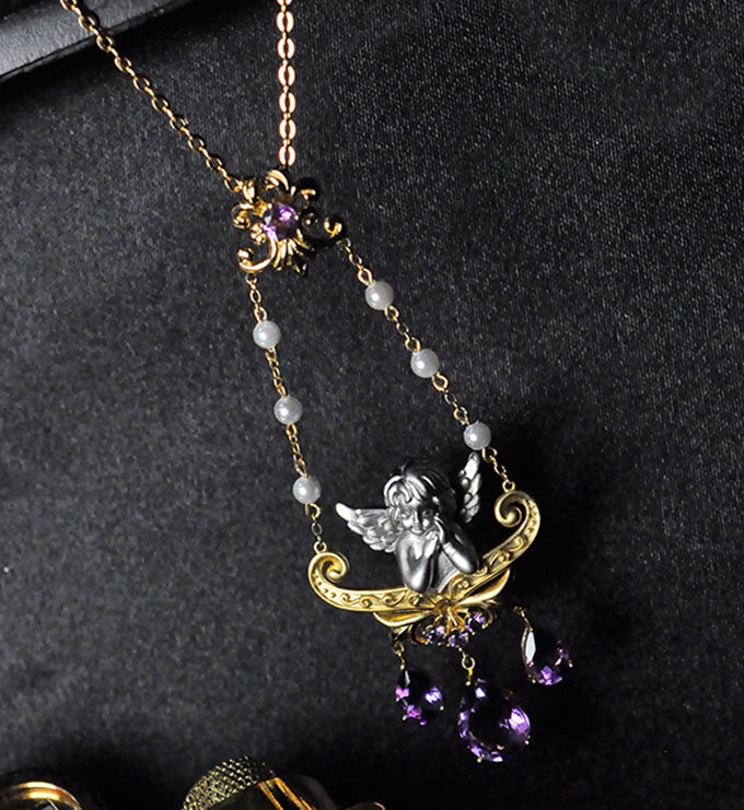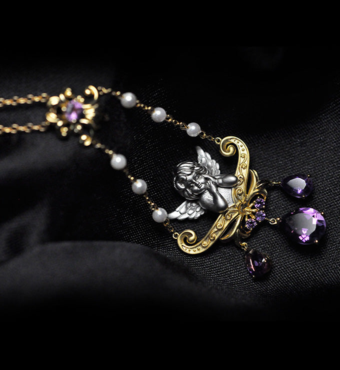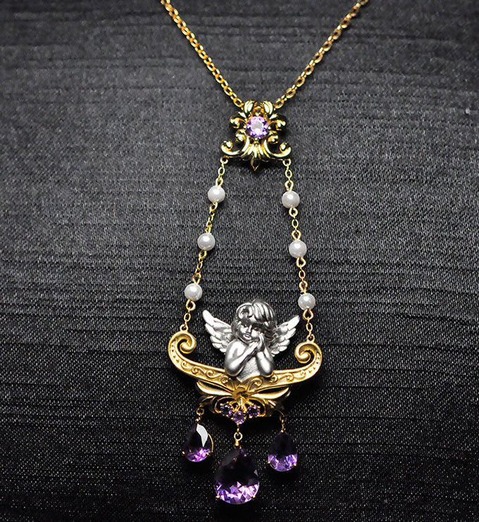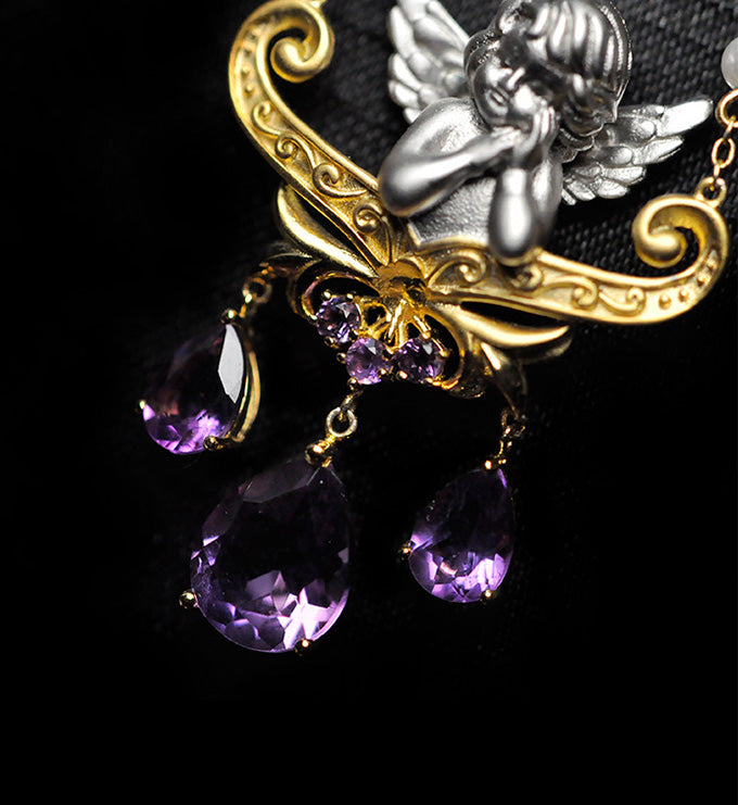 Angel Necklace-Natural Amethyst, S925 Sterling Silver, 18K gold plated ,Handmade High-grade Jewelry.