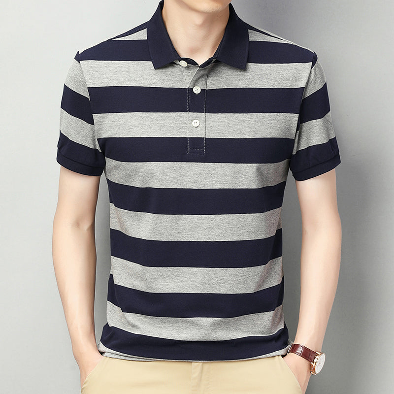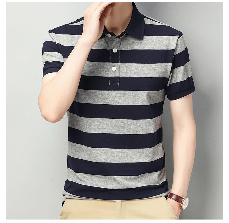 Short-sleeved contrast striped fashionable polo shirt tops for men