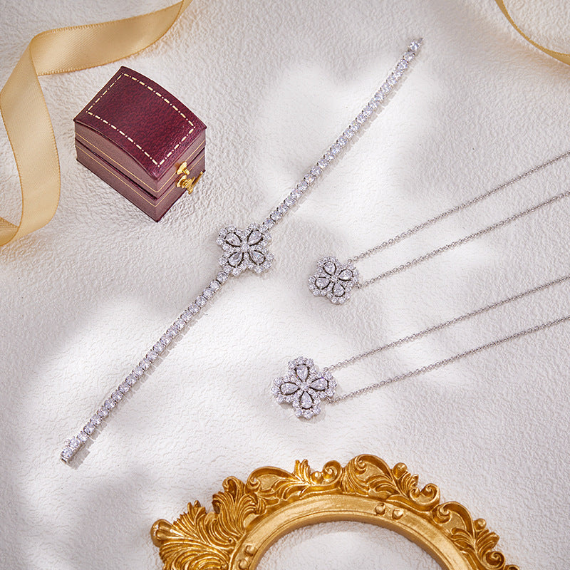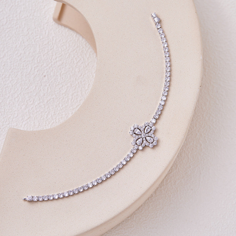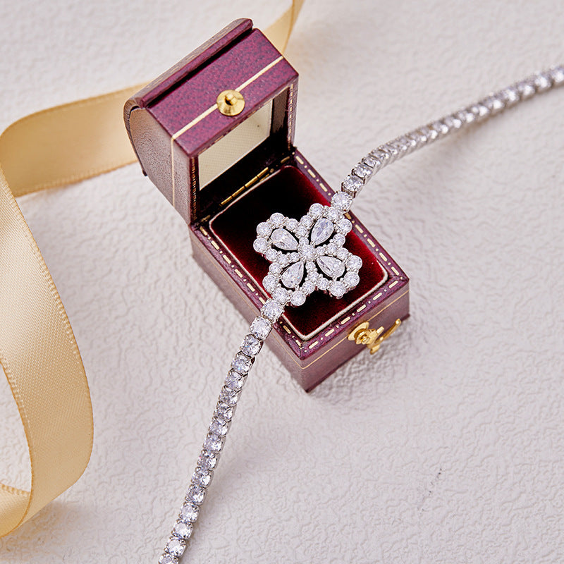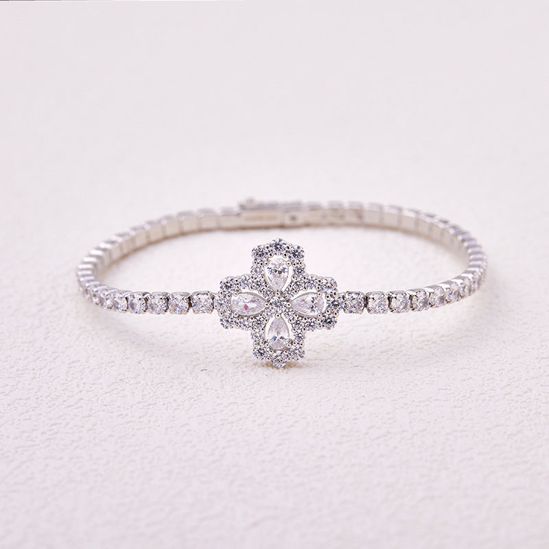 Sterling Silver Plated 18K Platinum Four Flower Bracelet Inlaid with zircon Jewelry