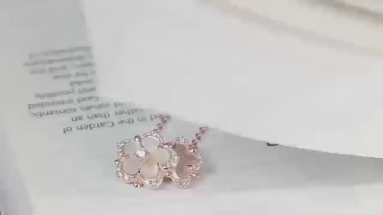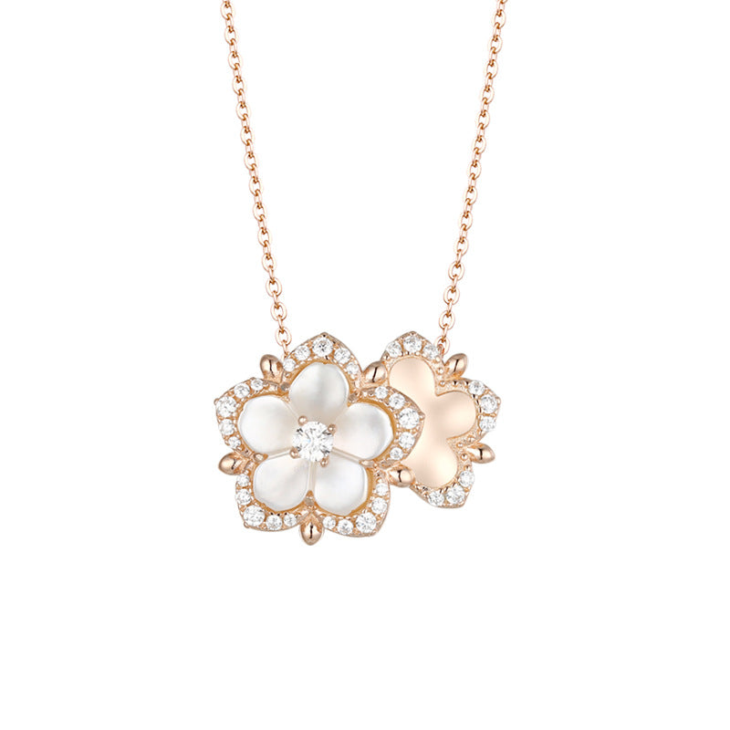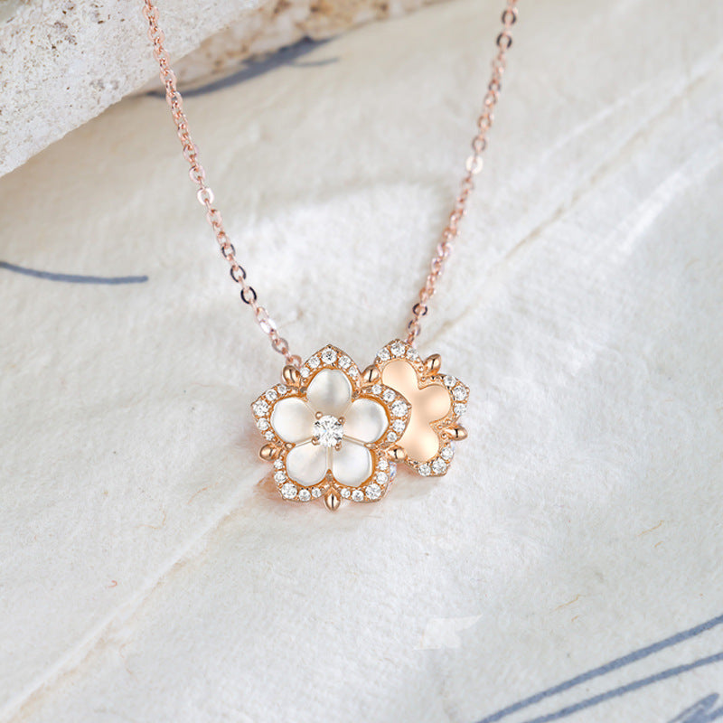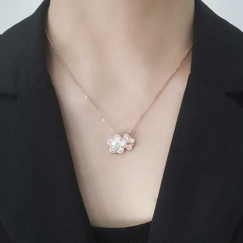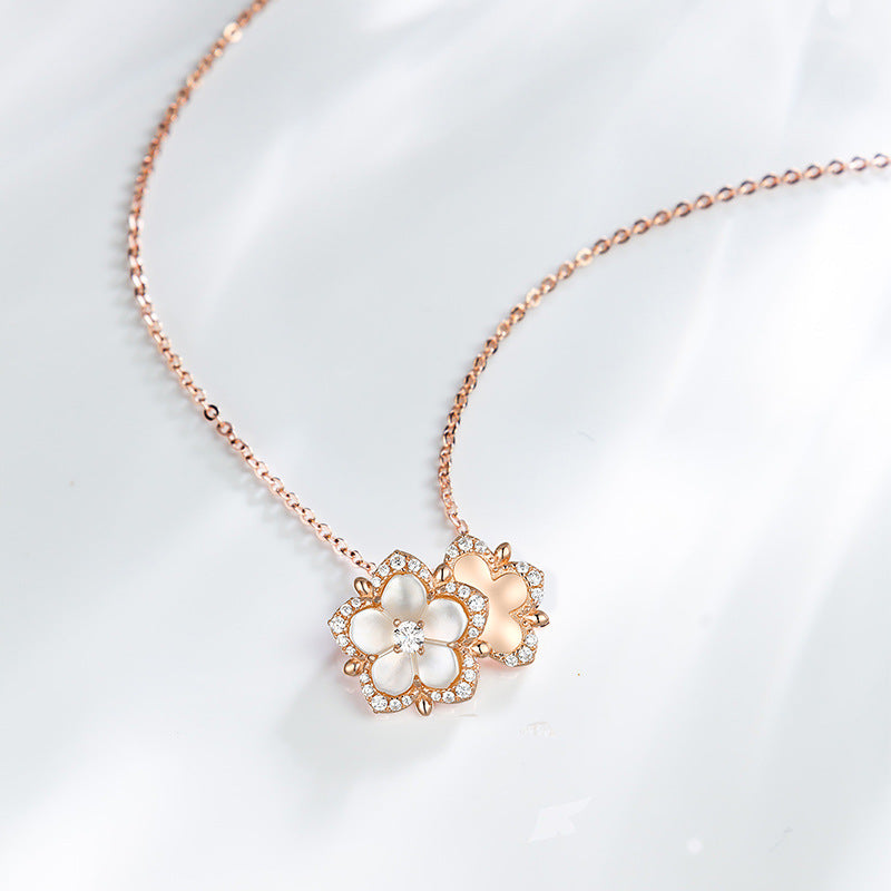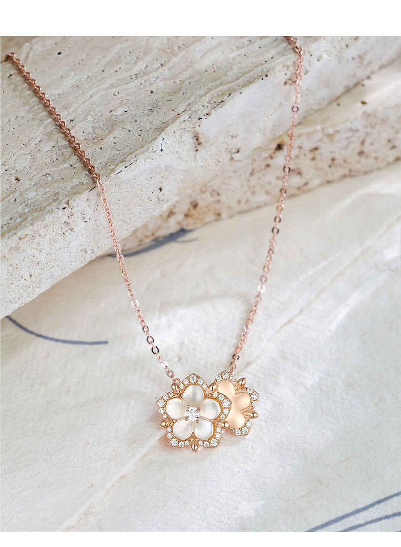 S925 Sterling Silver Plated with 14K Rose Gold, Cherry Blossom White Shell Necklace for Women, Versatile and Elegant, Light Luxury Collar Chain Flower Pendant。