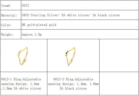 Women's Ring -3A Zircon,S925 Sterling Silver, 9K Gold Plated, Opening Adjustable.