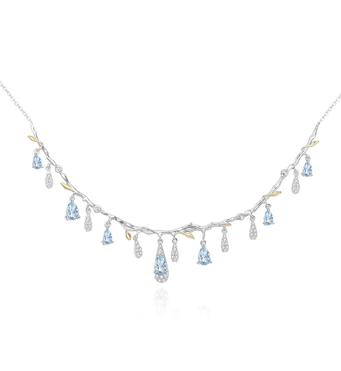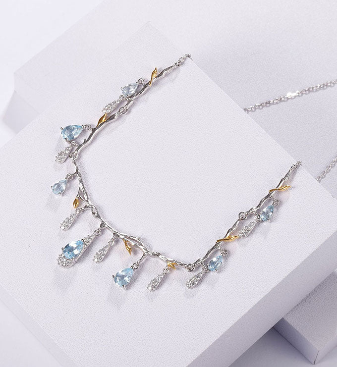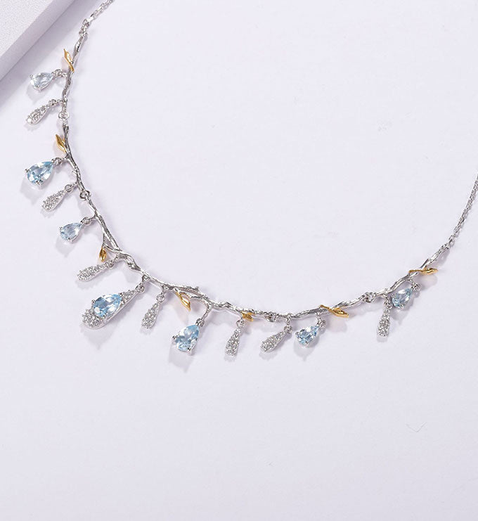Made of S925 Sterling silver, 18K gold-plated, inlaid with natural blue topaz.