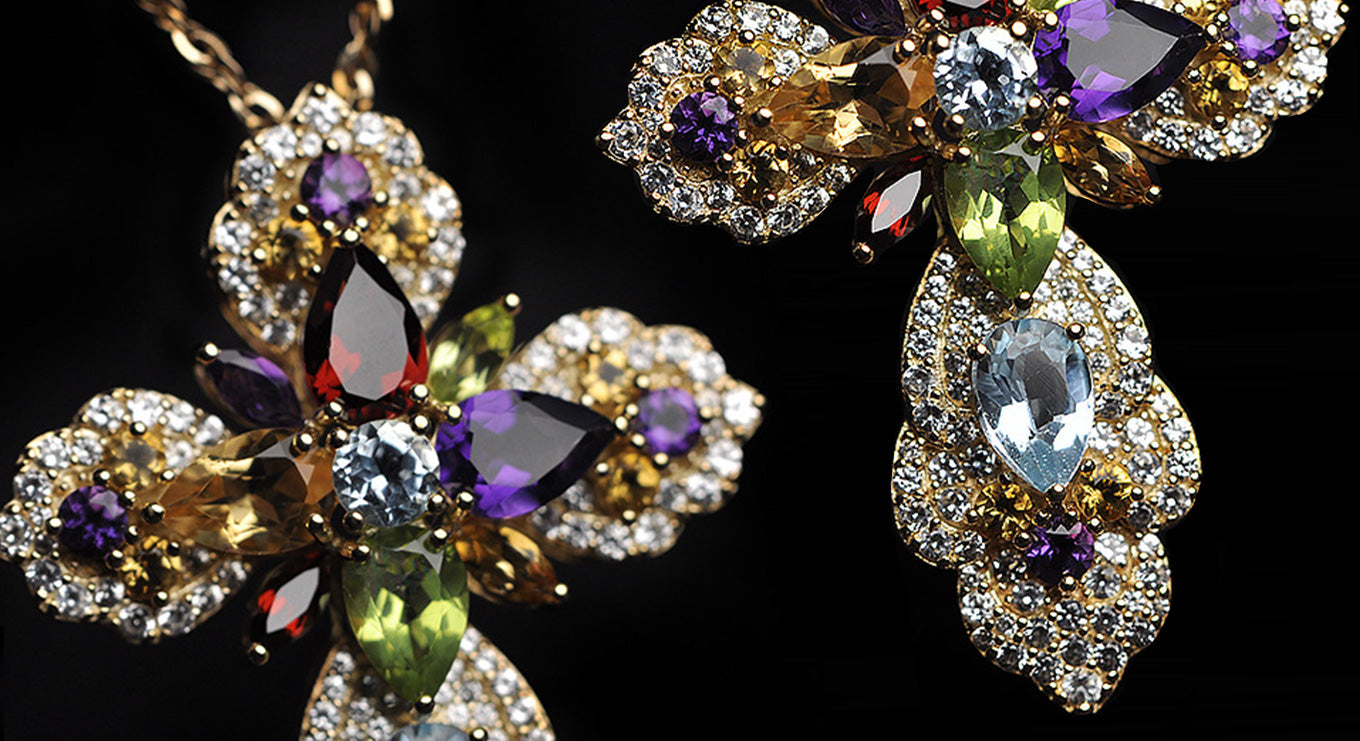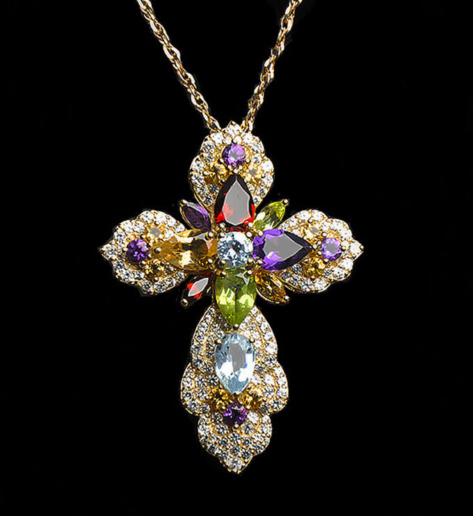 Multiple Gem Cross Pendant Necklace-Natural Garnet-Amethyst-peridot