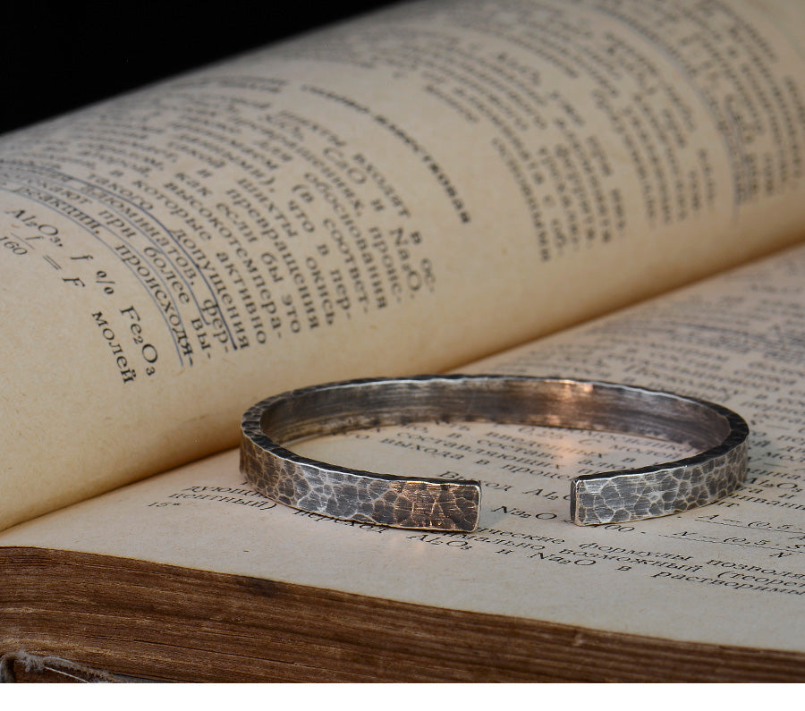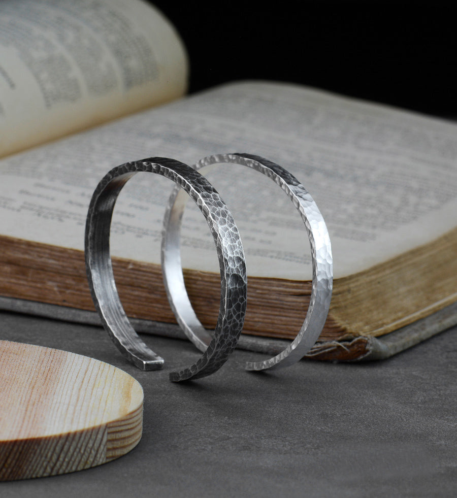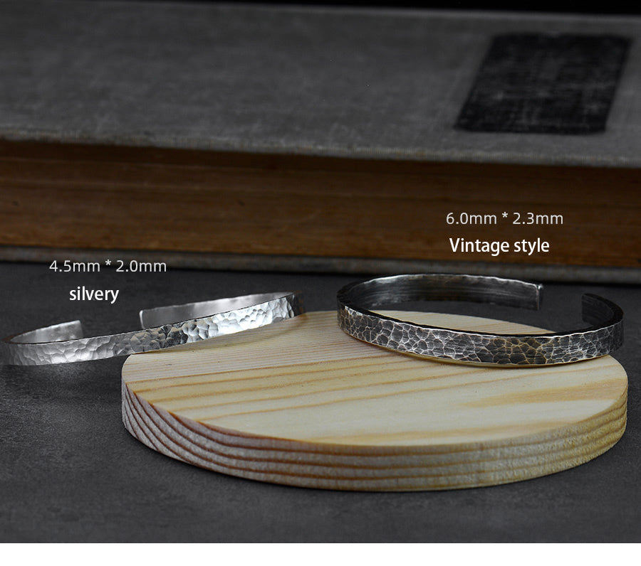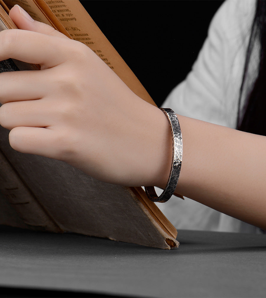 Sterling silver hand hammer, opening, couple bracelet