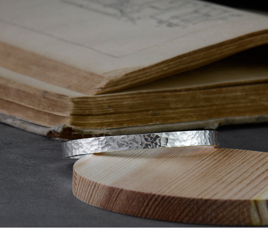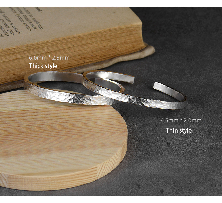 Solid open sterling silver hand hammer bracelet