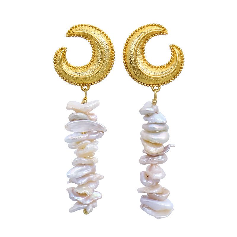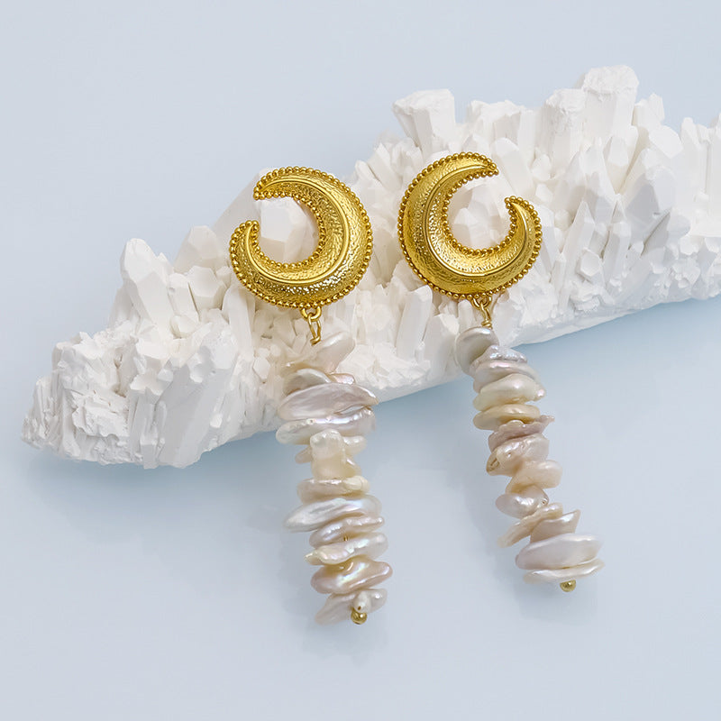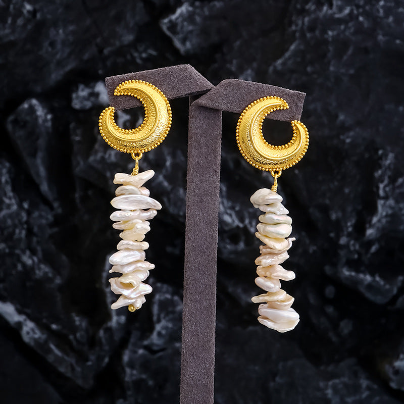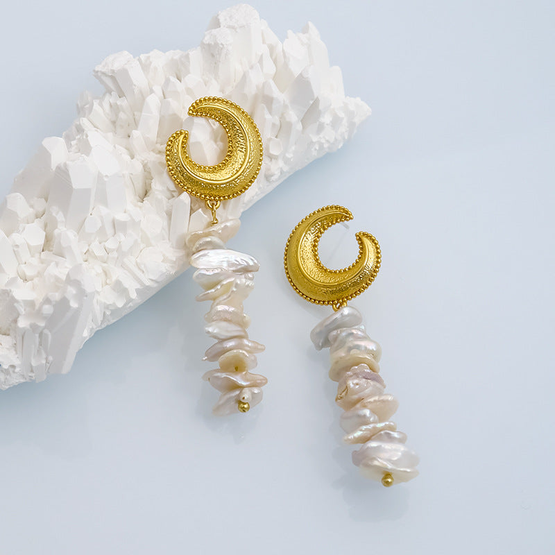 Niche design, premium, brass plated 18K gold, Baroque pearl, with S925 sterling silver pin,personalized earrings .