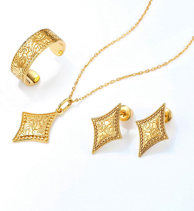Classic Leaf Pattern Ring-Earrings-Pendant Set