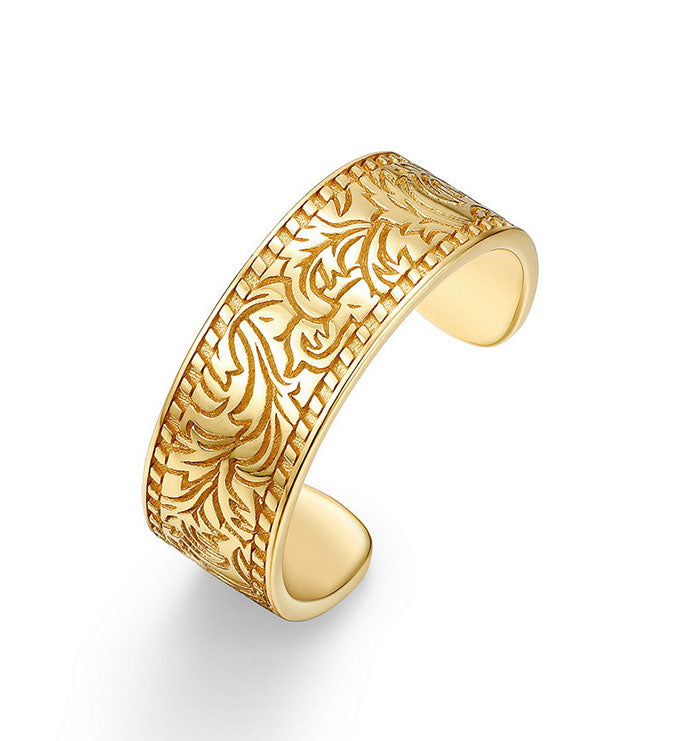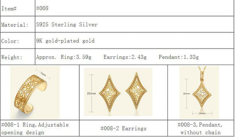 Classic Leaf Pattern Ring-Earrings-Pendant Set, S925 Sterling Silver, 9K gold plated.
