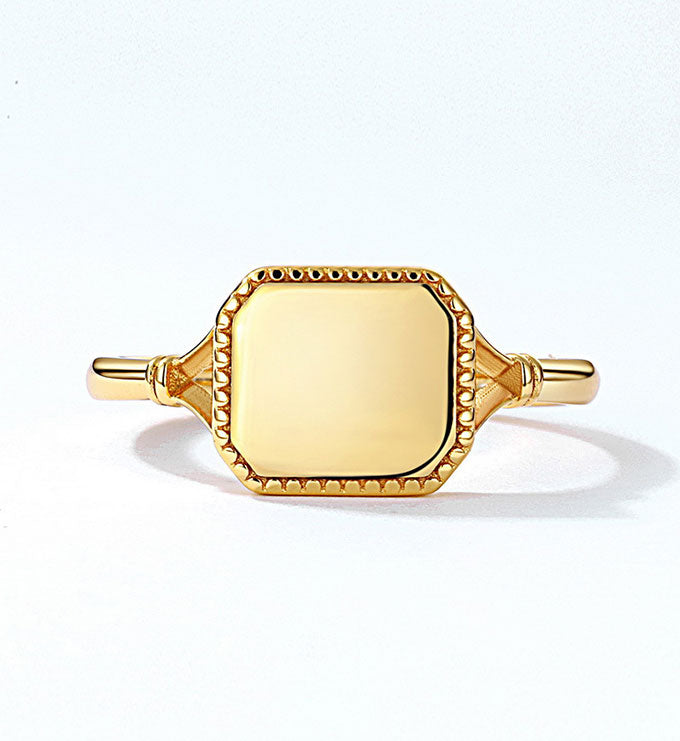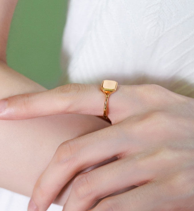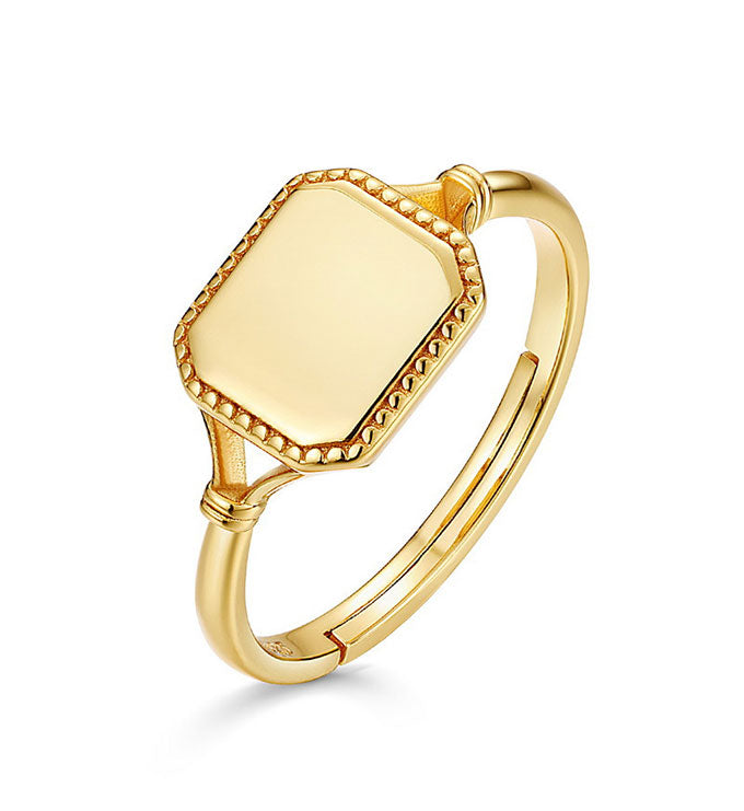 Women's Seal Ring,made of S925 Sterling Silver,9K Gold Plated, Adjustable Opening.