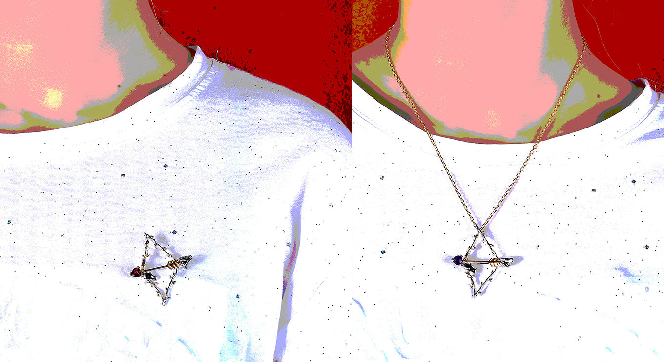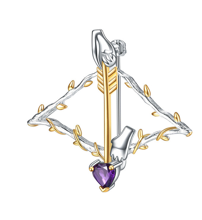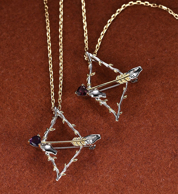 Cupid arrow brooch and Pendant Necklace-Natural Rose garnet-Amethyst
