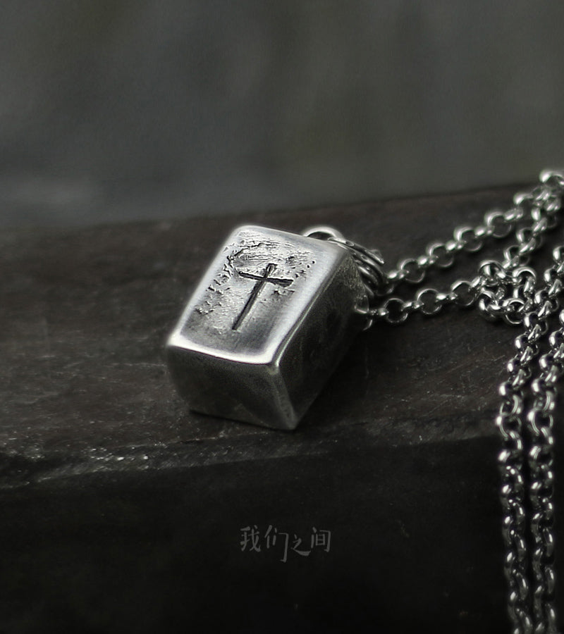 Handmade Sterling Silver Solid Pendant Cross Necklace.