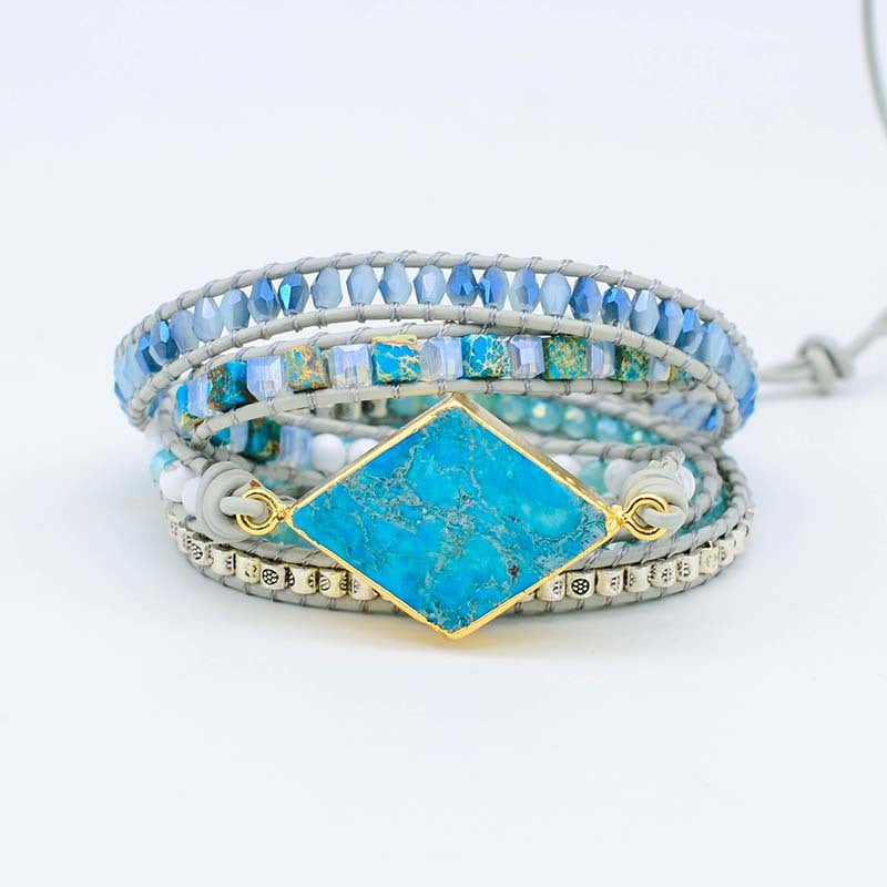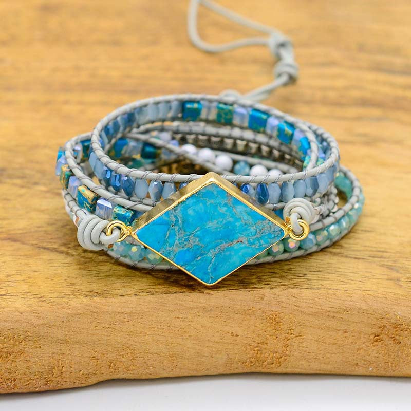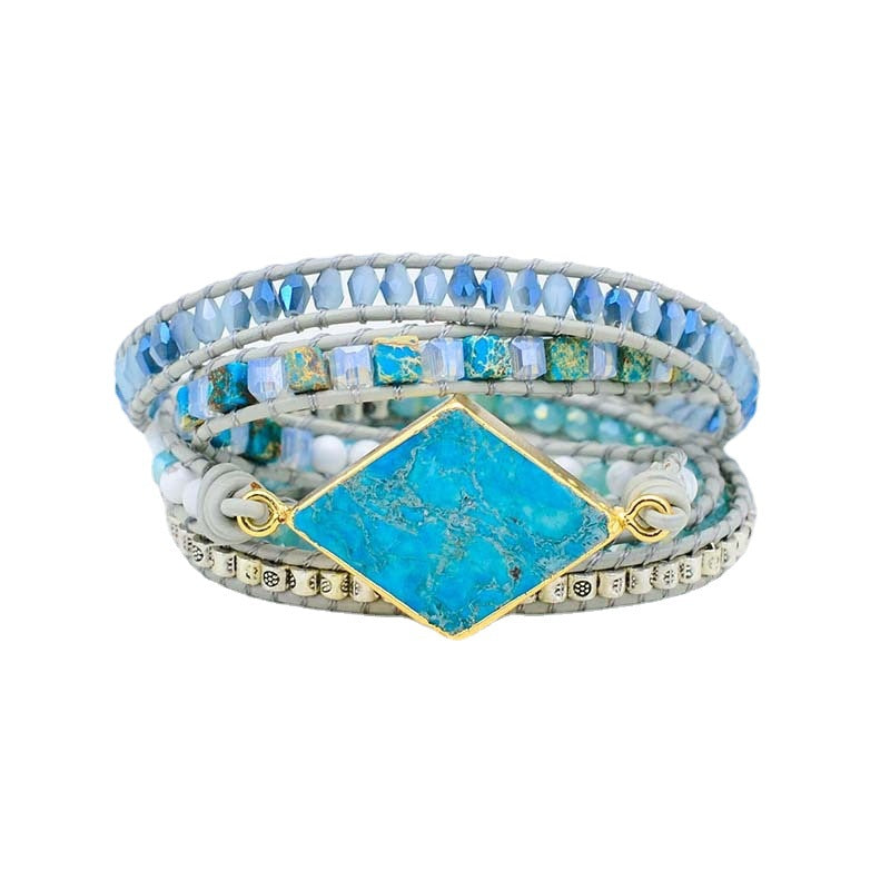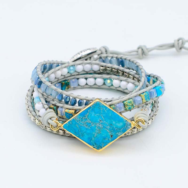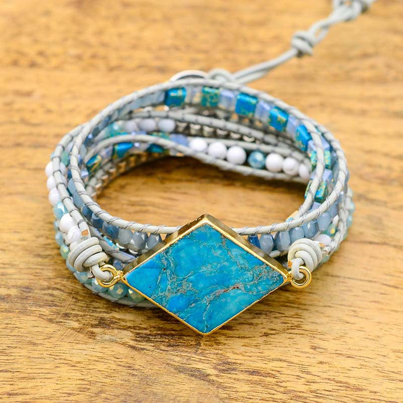 Natural diamond turquoise woven leather multi-layer winding bracelet for men and women
