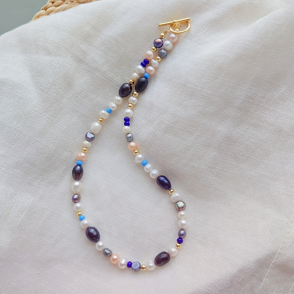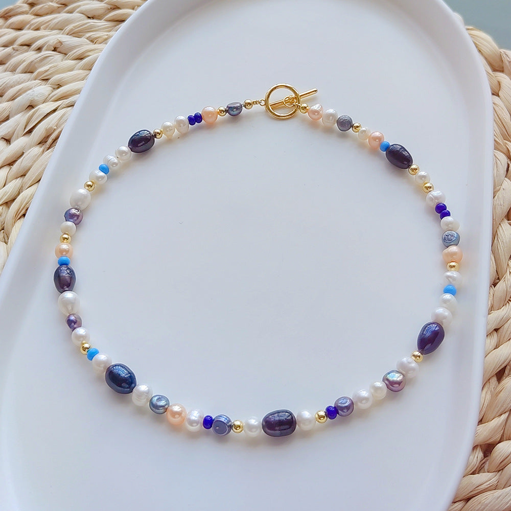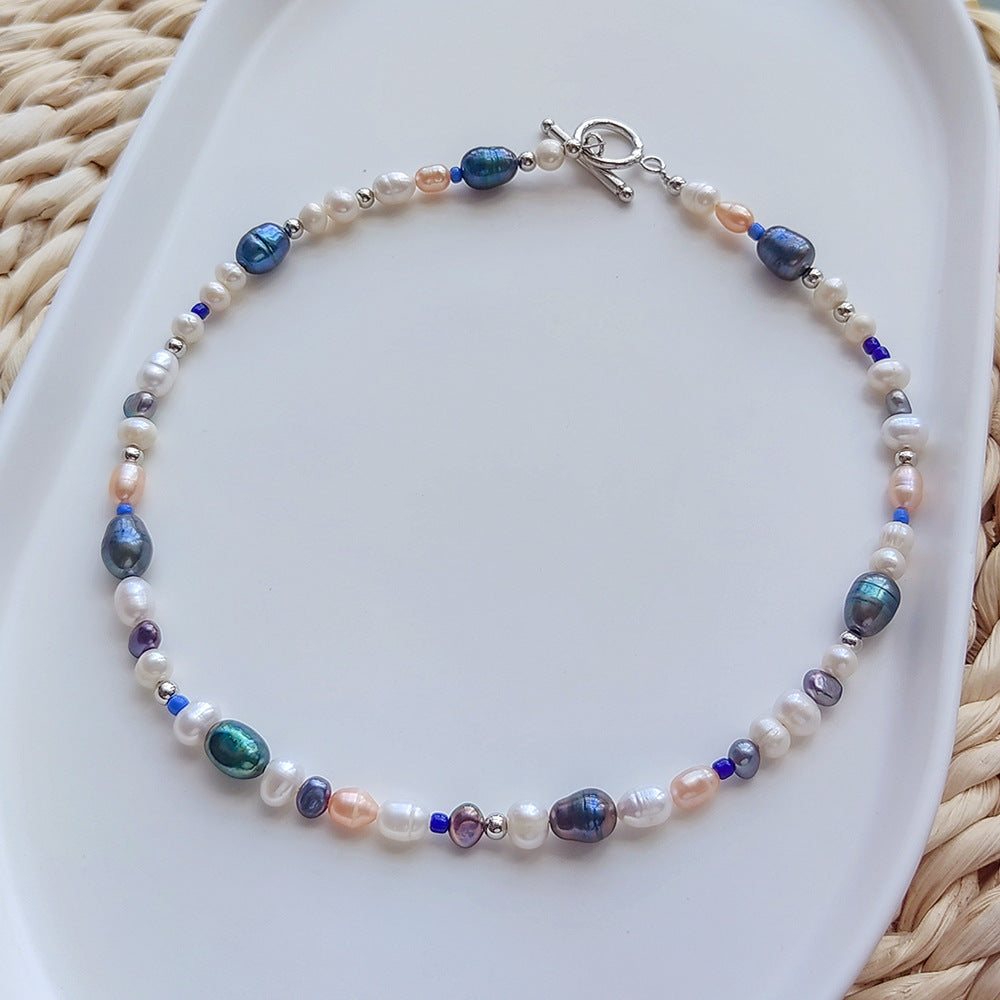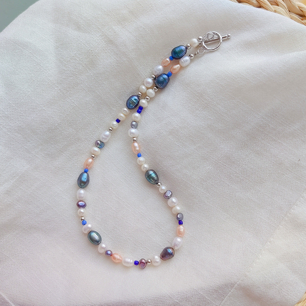A niche temperament, natural freshwater pearl collarbone chain, versatile multi-color light luxury necklace for women。