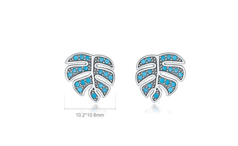 S925 Sterling silver inlaid with turquoise leaf earrings for female fashion niche.