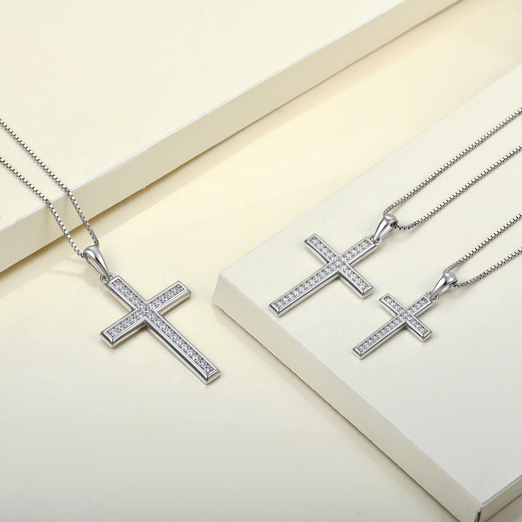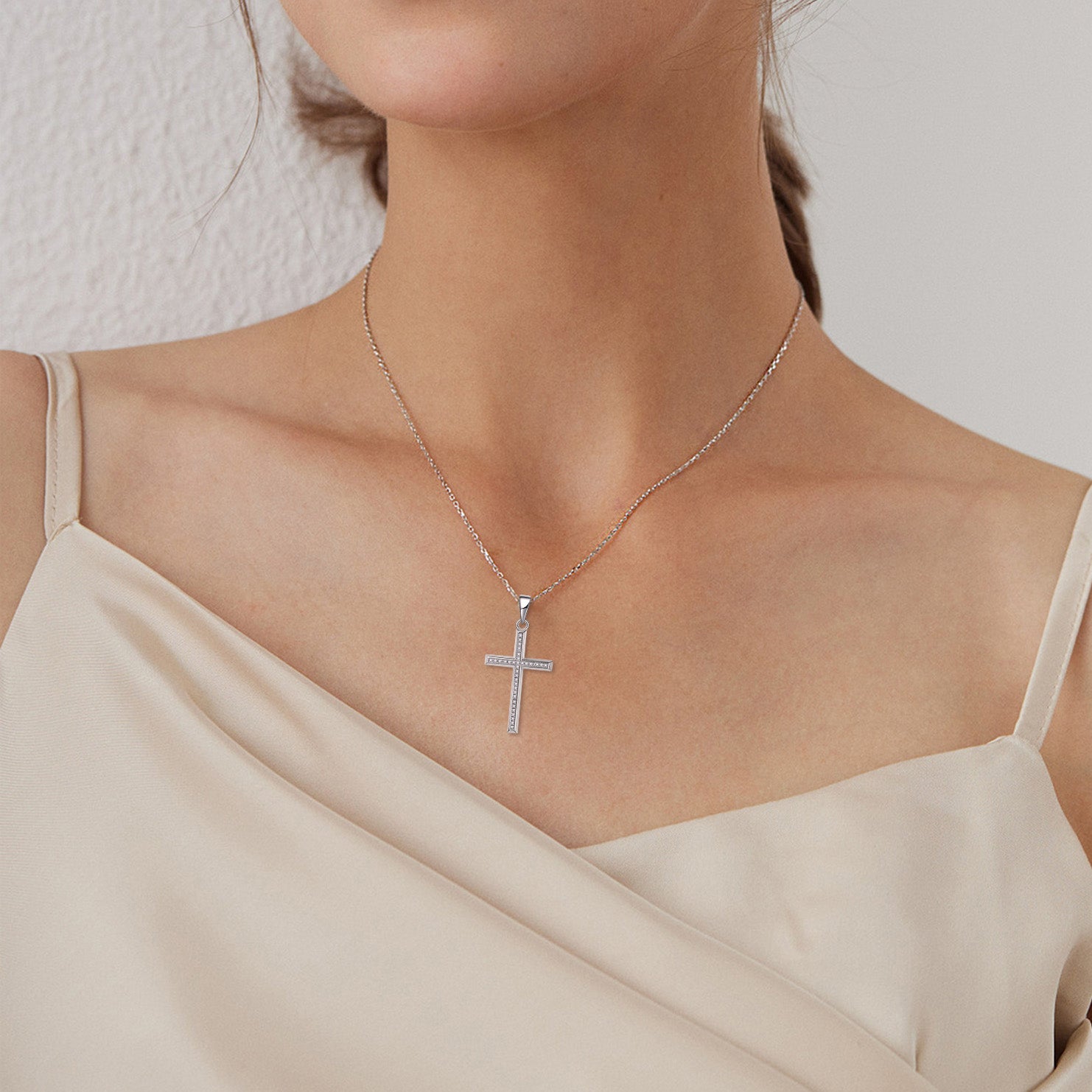 Stylish and minimalist cross pendant, S925 sterling silver inlaid with zircon, fashionable and personalized。
