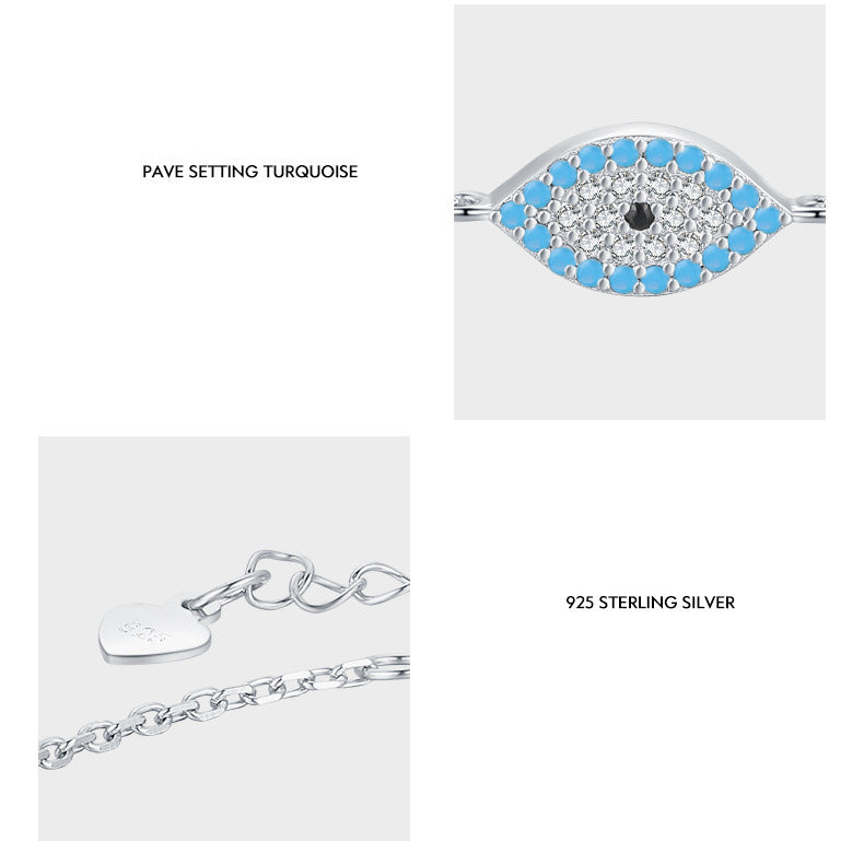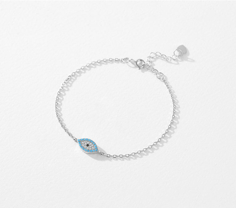 S925 Sterling Silver turquoise Devil's Eye Bracelet Female Fashion Personality Light Luxury Full of Diamonds(zircon)