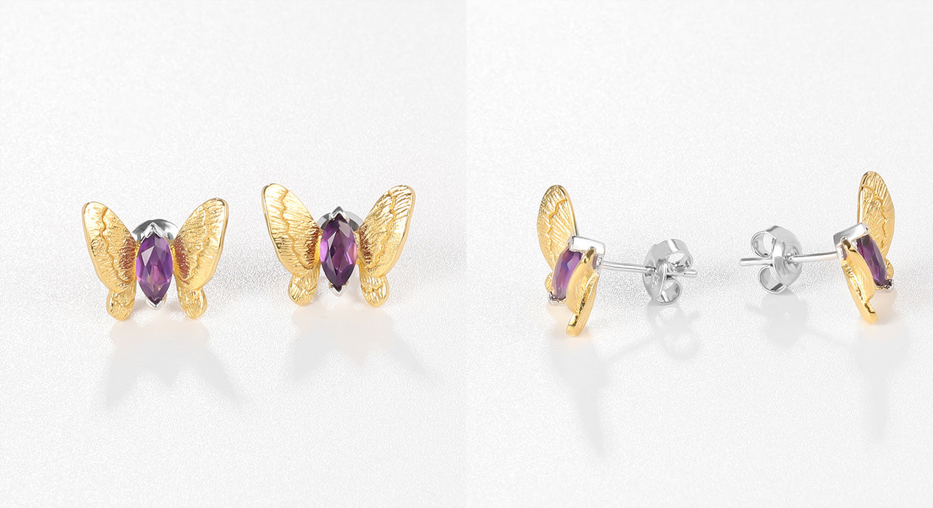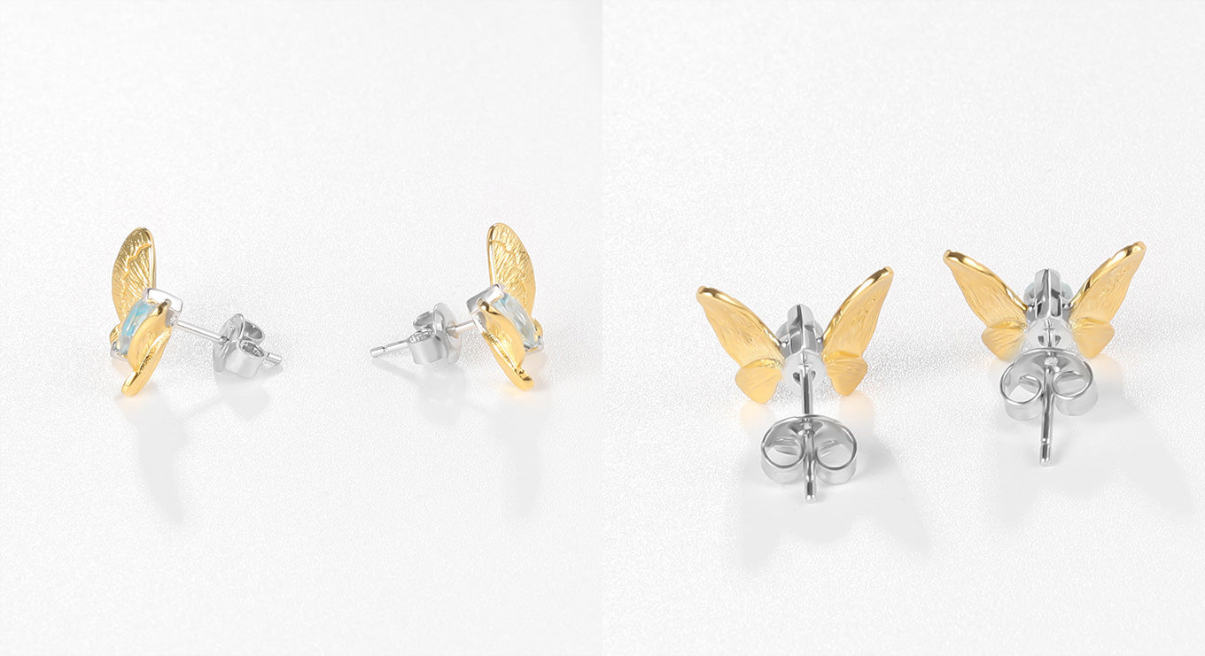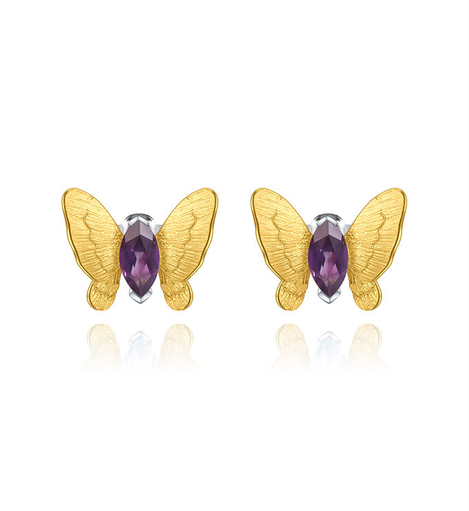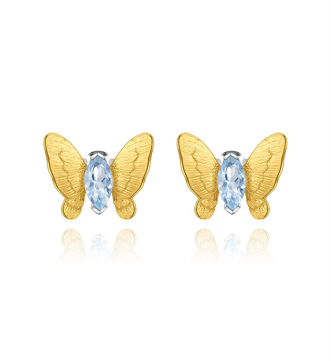 Butterfly Ear Studs-Natural Blue Topaz-Amethyst